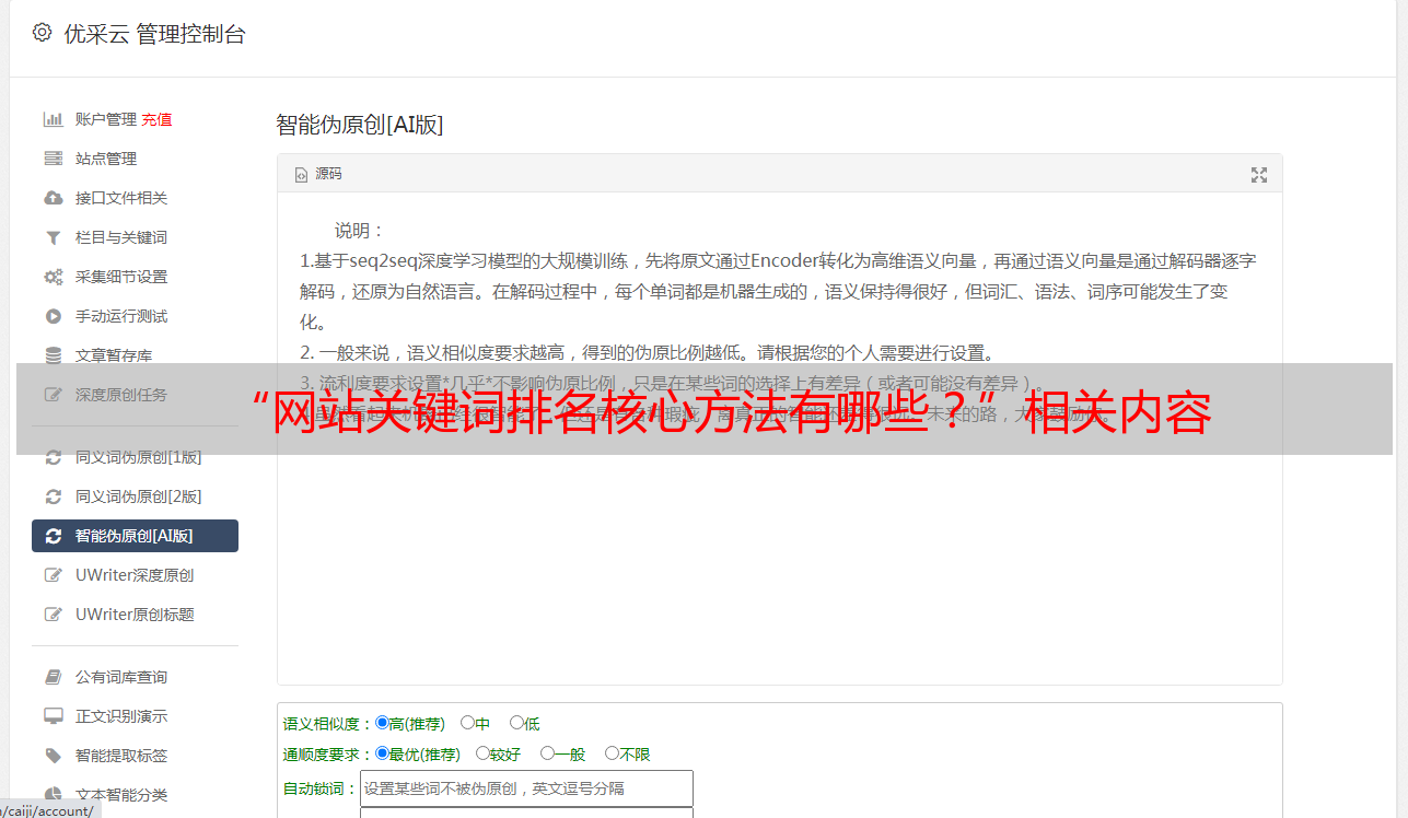 优采云 发布时间: 2021-07-31 04:19“网站关键词排名核心方法有哪些?”相关内容
