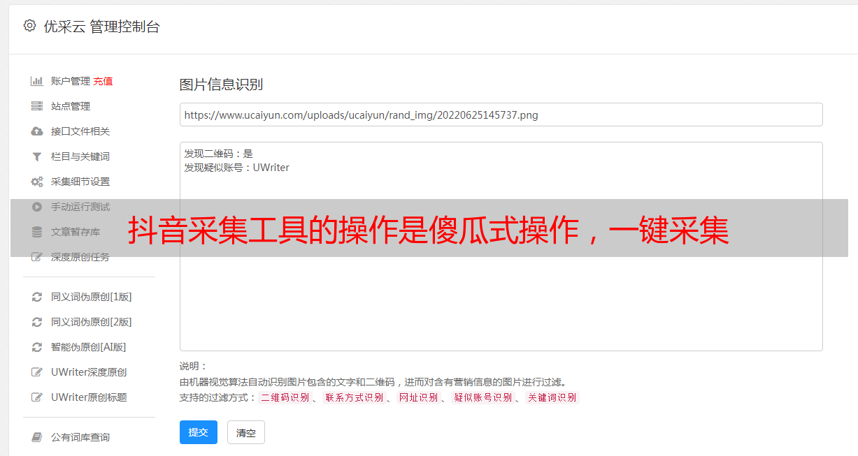 优采云 发布时间: 2021-07-31 05:27抖音采集工具的操作是傻瓜式操作,一键采集