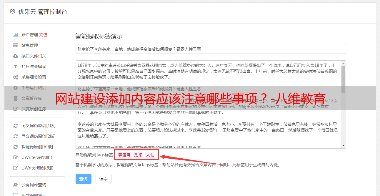 优采云 发布时间: 2021-07-31 18:28网站建设添加内容应该注意哪些事项?-八维教育