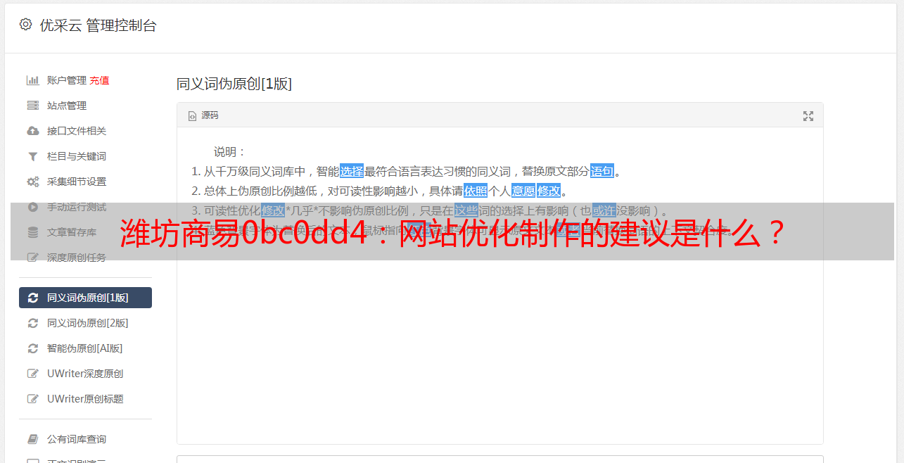 潍坊商易0bc0dd4:网站优化制作的建议是什么?