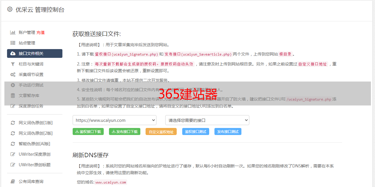 5、365建站器外置301重定向、伪静态、生成网站地图、随机模板等seo功能