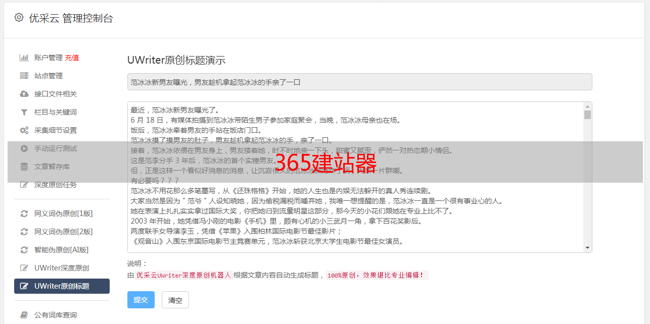 优采云 发布时间: 2020-08-10 20:44365建站器是一款网站创建软件,可以帮助更多的网站进行手动采集到相关的数据,进行更多的网路站点的管理,选择seo相关内容的游河选项等内容就可以帮助更好的打理相关的网站等。