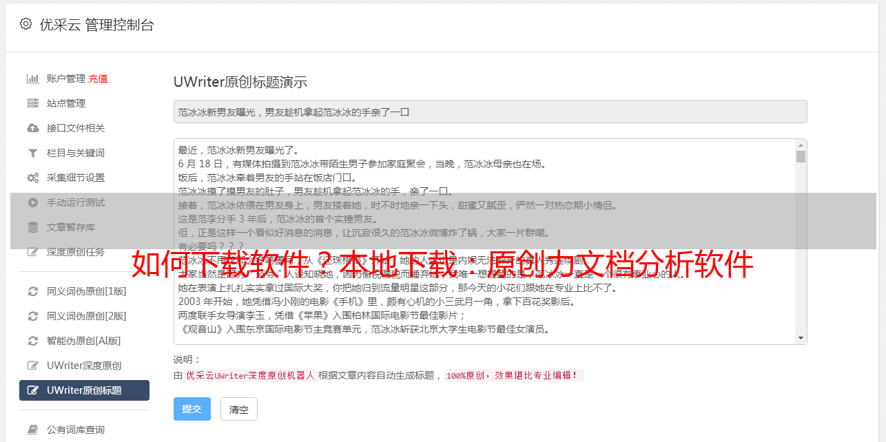 有上传文档的用户反馈,希望有更精细化的后台数据分析功能,分析本站文档的定价、文档的价值、用户需要什么样的文档。但是如果集成到原创力文件网站后台,功能太复杂,不利于新手用户。因此,开发了单独的文档分析客户端,方便有经验的上传用户使用。