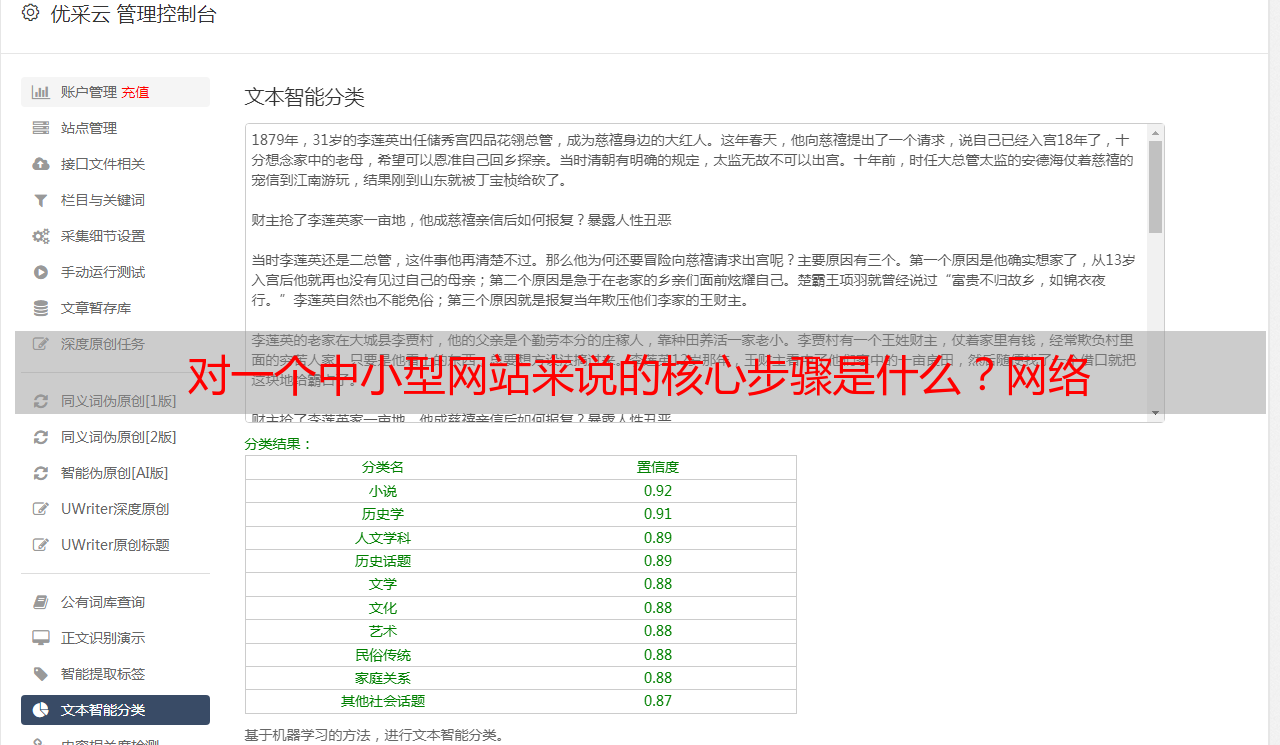 优采云 发布时间: 2021-08-02 22:00对一个中小型网站来说的核心步骤是什么?网络