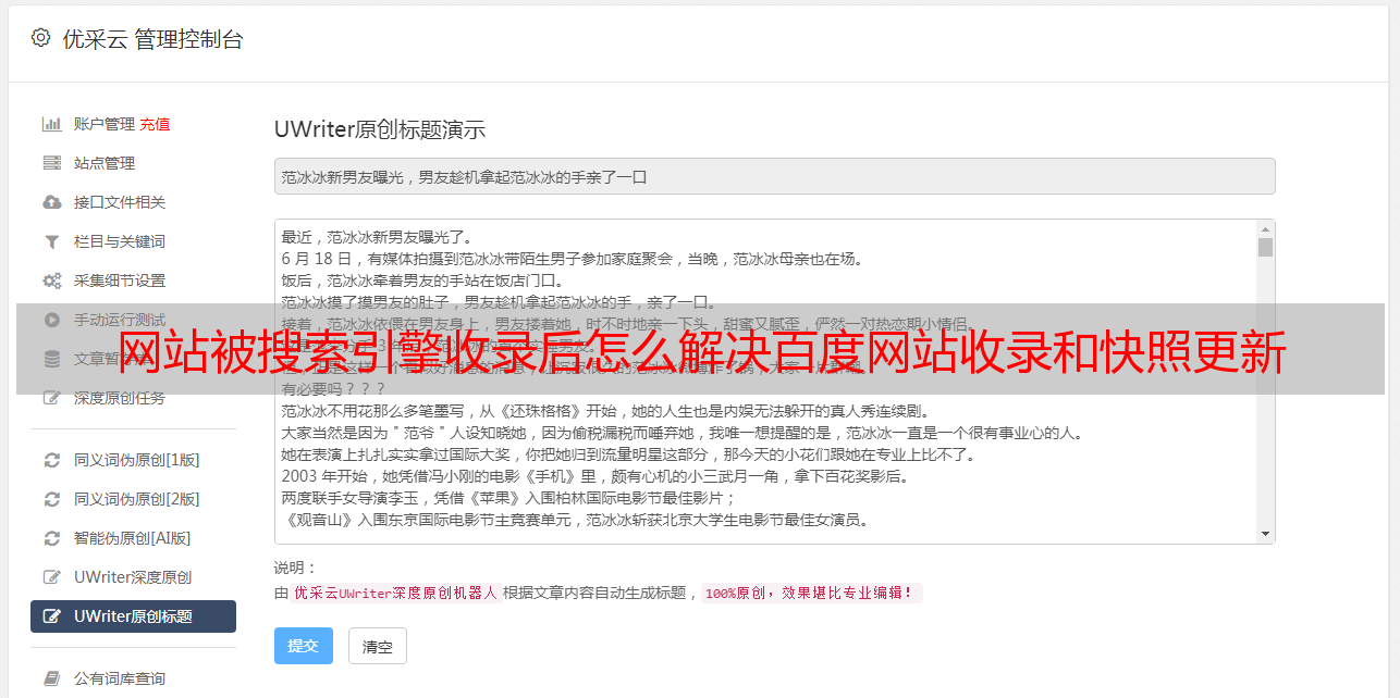 网站被搜索引擎收录后怎么解决百度网站收录和快照更新