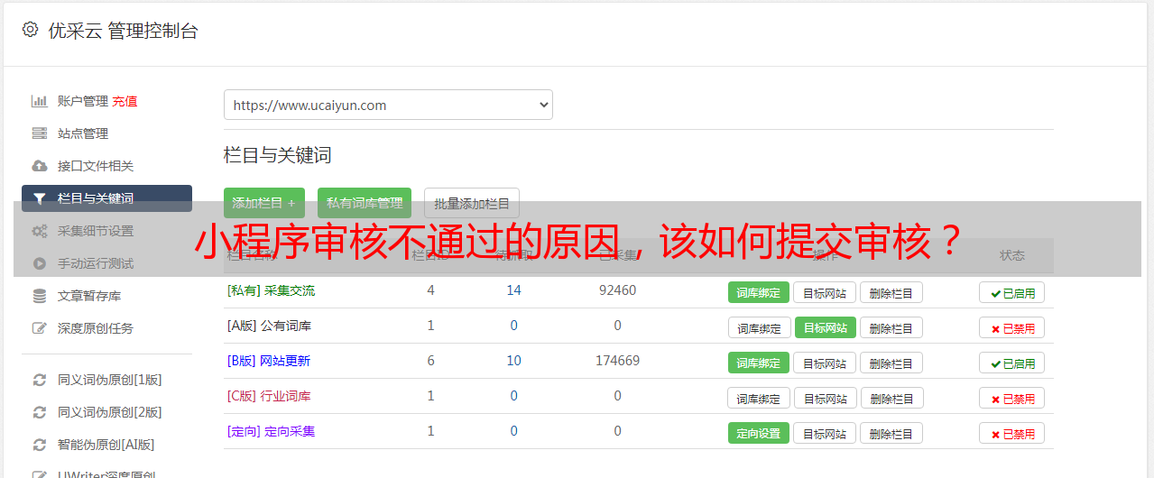 优采云 发布时间: 2021-08-05 18:24小程序审核不通过的原因,该如何提交审核?