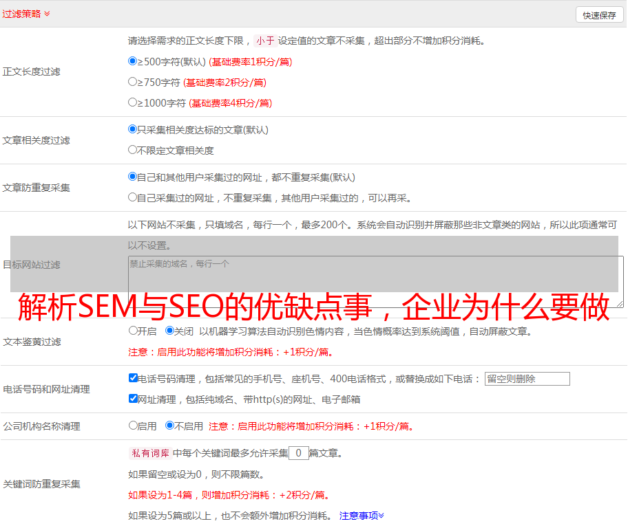 SEM 关注最后一个“M”。因为SEO的作用是利用搜索引擎提高某个关键词的排名。要做到这一步,真正意义上的营销目前还无法实现。试想一下,虽然有一些网站排名****的页面,但标题和描述并不吸引人,其他的就是不点击;即使点击,网站打开也很慢,甚至打不开。客户也会立即关闭网页并点击下一个搜索结果,或者当他们点击进入它时,它看起来像一个垃圾站,一个广告站,他们不断地跳过广告。客户也会打开和关闭网页。