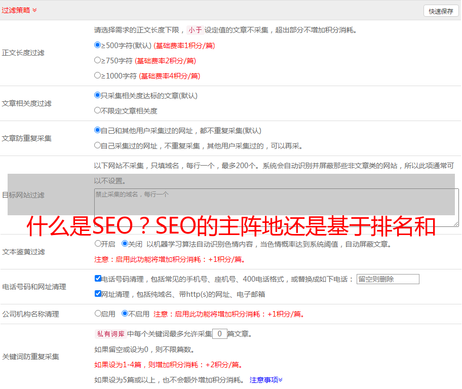 关于SEO,严格的定义如下:SEO是指网站基于对搜索引擎自然排名机制的理解,以及网站在搜索引擎中的改进,对网站进行内外调整和优化关键词自然排名,获得更多印象,吸引更多目标客户点击访问网站,从而达到网络营销和品牌建设的目的。