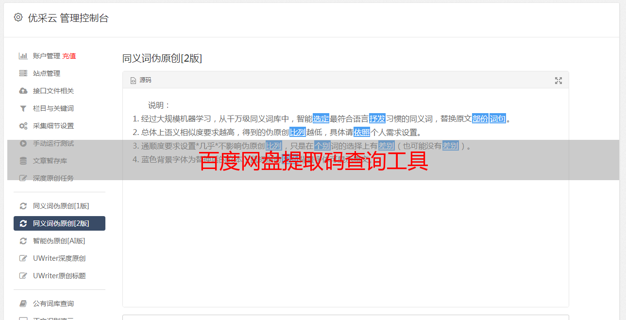 优采云 发布时间: 2020-08-11 16:05百度网盘提取码查询工具,不仅有获取百度网盘提取码的功能,收录查询、免登入、直链解析,从获取提取码到直链解析下载一应俱全。