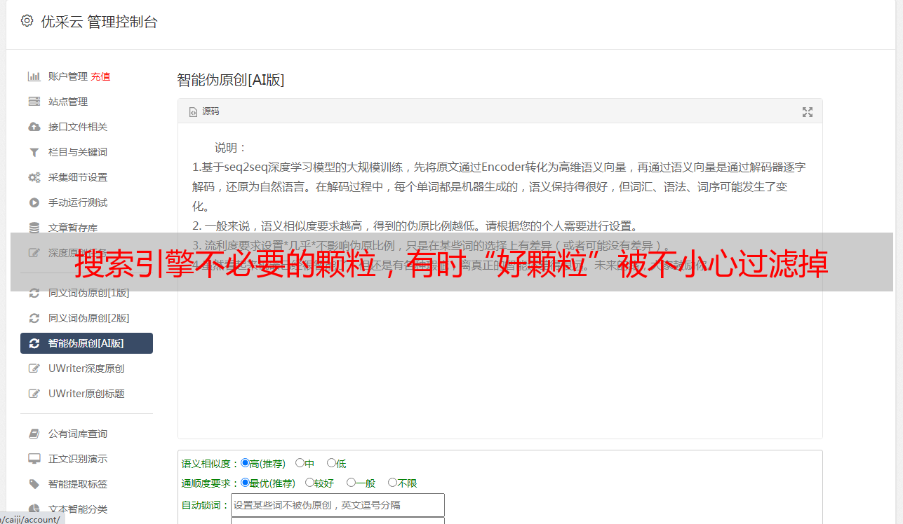优采云 发布时间: 2021-08-09 23:05搜索引擎不必要的颗粒,有时“好颗粒”被不小心过滤掉