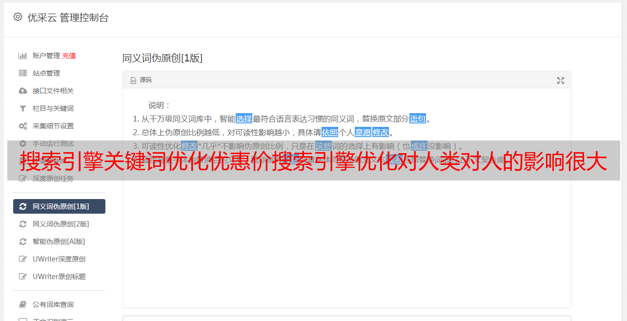 优采云 发布时间: 2021-08-10 03:07搜索引擎关键词优化优惠价搜索引擎优化对人类对人的影响很大