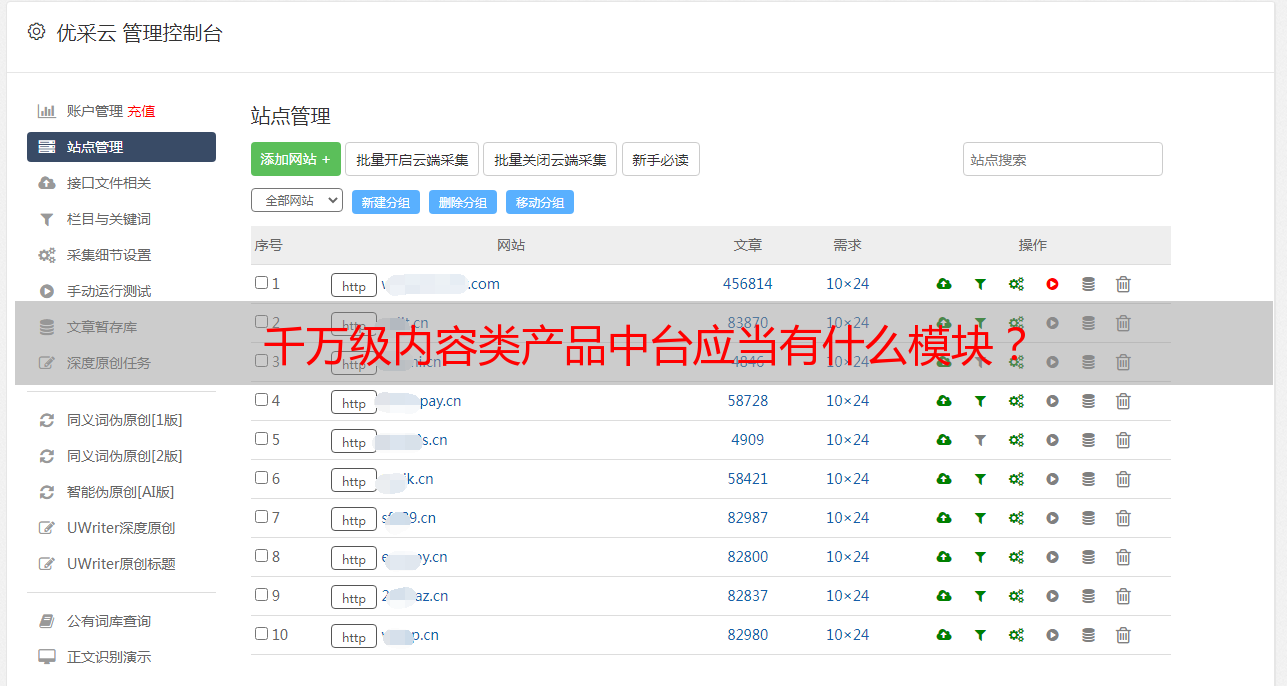 千万级内容类产品中台应当有什么模块?