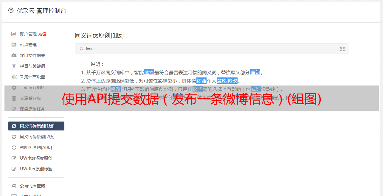 优采云 发布时间: 2021-08-12 07:18使用API提交数据(发布一条微博信息)(组图)