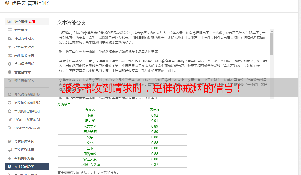 优采云 发布时间: 2021-08-12 19:32服务器收到请求时,是催你戒烟的信号!