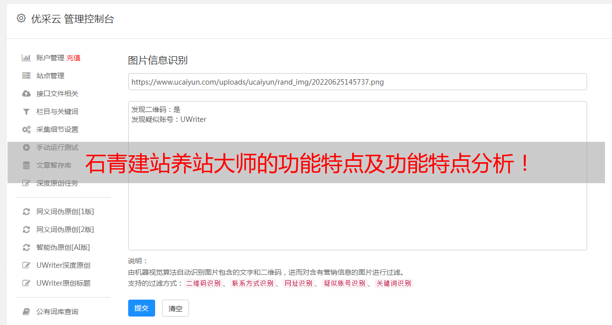 优采云 发布时间: 2021-08-13 06:23石青建站养站大师的功能特点及功能特点分析!