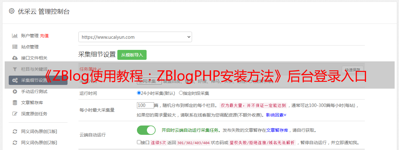 顶部的“静态管理中心”是ZBlogPHP系统集成的默认URL伪静态设置插件。详细设置请参考《ZblogPHP伪静态设置方法最新教程》;