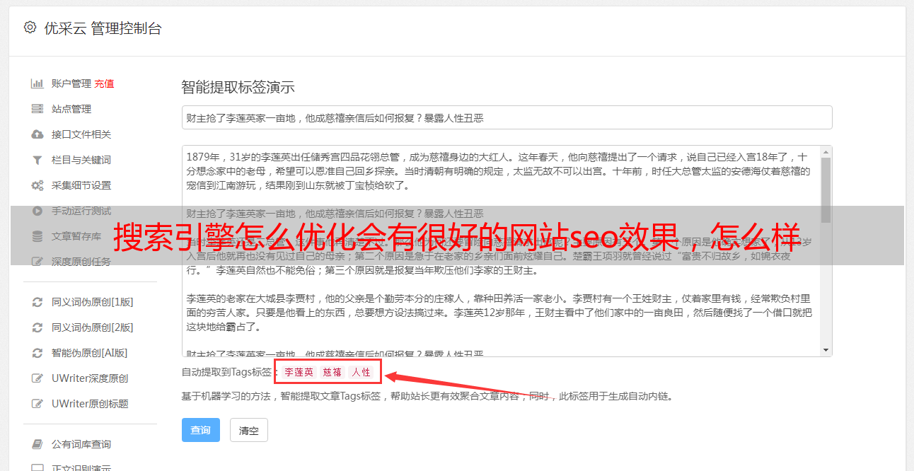 优采云 发布时间: 2021-08-14 07:01搜索引擎怎么优化会有很好的网站seo效果,怎么样