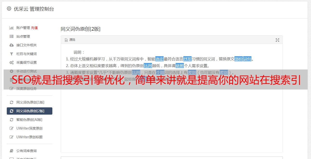 优采云 发布时间: 2021-08-14 23:24SEO就是指搜索引擎优化,简单来讲就是提高你的网站在搜索引擎的自然排名