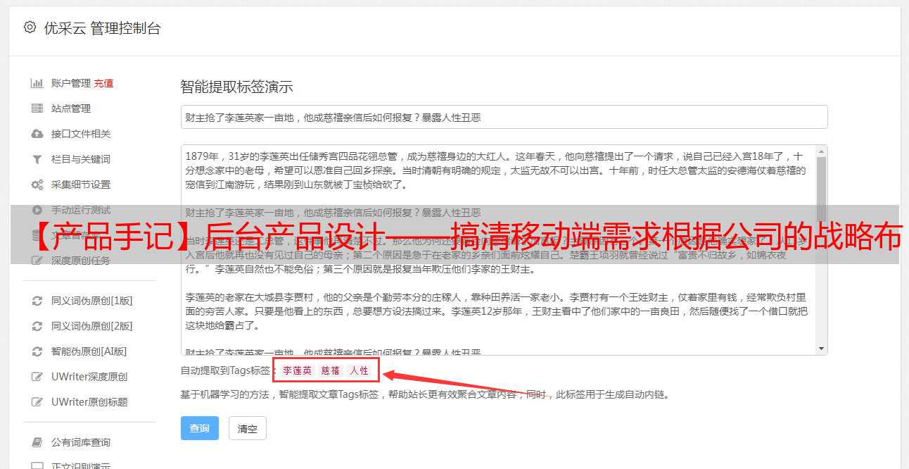 优采云 发布时间: 2021-08-15 04:20【产品手记】后台产品设计——搞清移动端需求根据公司的战略布局