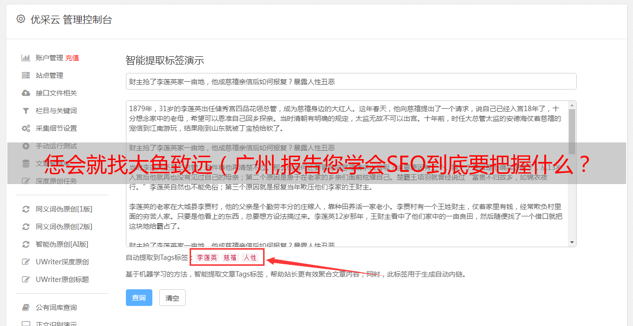 优采云 发布时间: 2021-08-15 19:05恁会就找大鱼致远(广州,报告您学会SEO到底要把握什么?