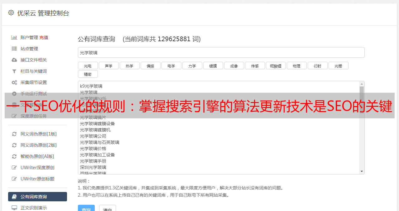 优采云 发布时间: 2021-08-15 23:11一下SEO优化的规则:掌握搜索引擎的算法更新技术是SEO的关键