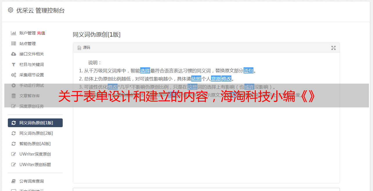 优采云 发布时间: 2021-08-16 05:00关于表单设计和建立的内容,海淘科技小编《》