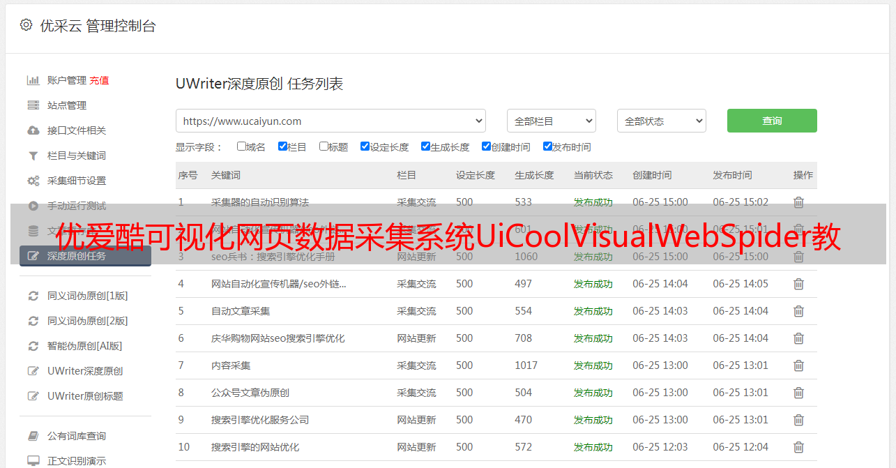 优采云 发布时间: 2021-08-16 20:09优爱酷可视化网页数据采集系统UiCoolVisualWebSpider教你从零开始学网络采集