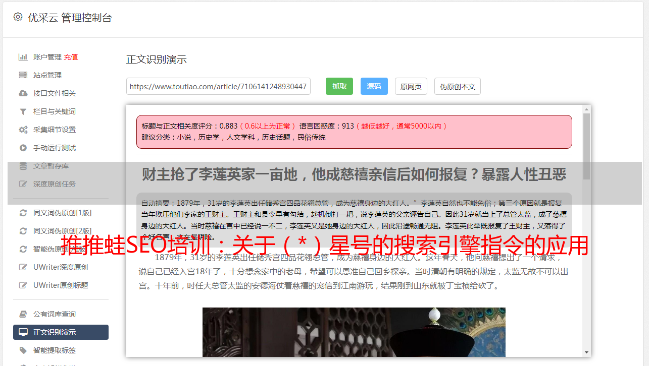 推推蛙SEO培训:关于(*)星号的搜索引擎指令的应用