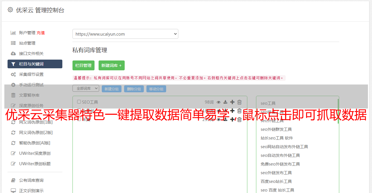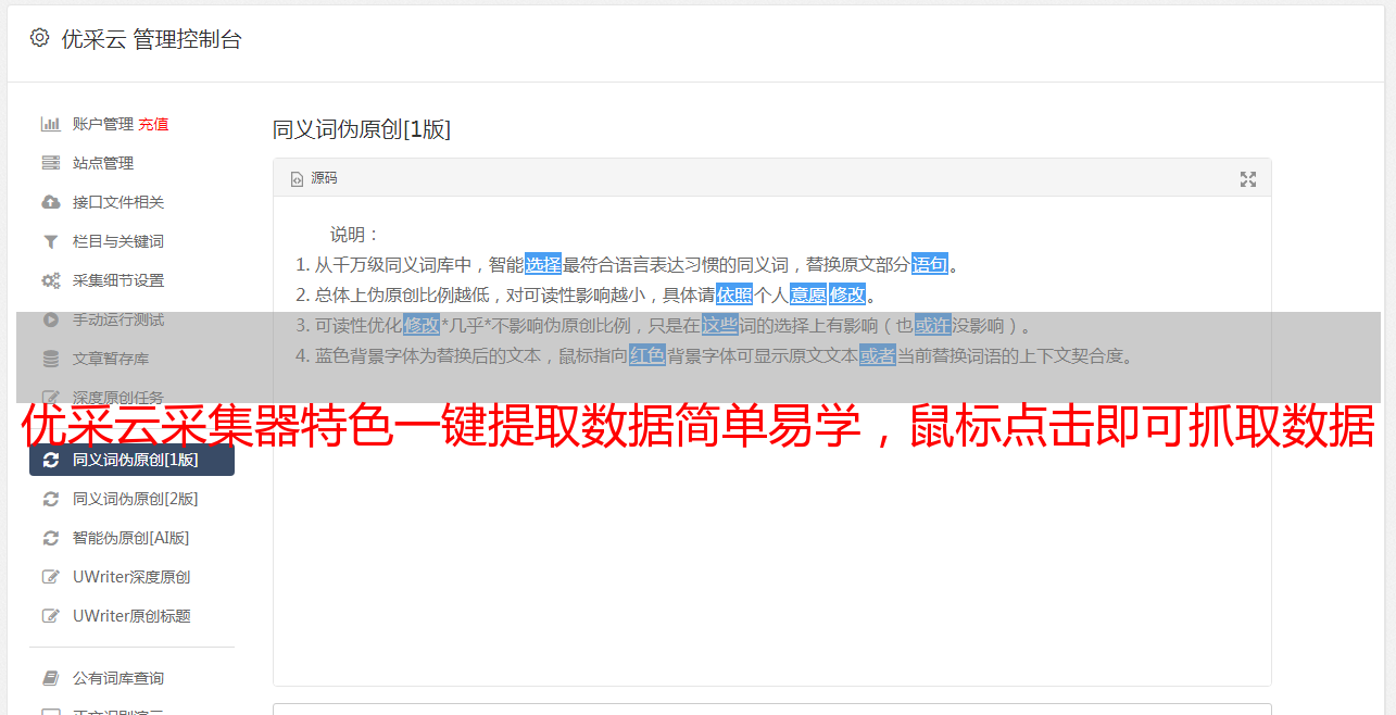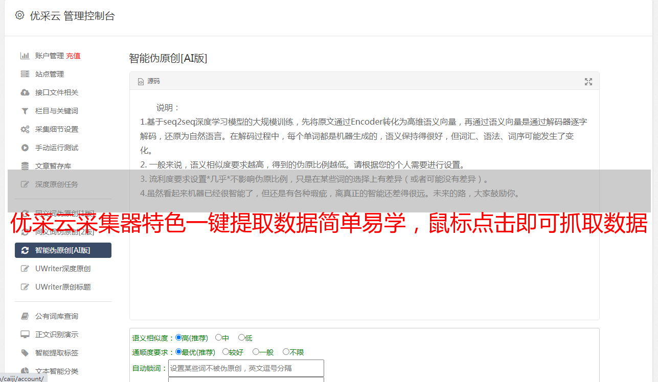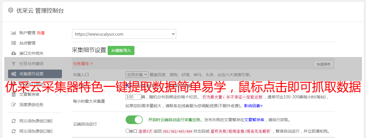优采云采集器特色一键提取数据简单易学,鼠标点击即可抓取数据