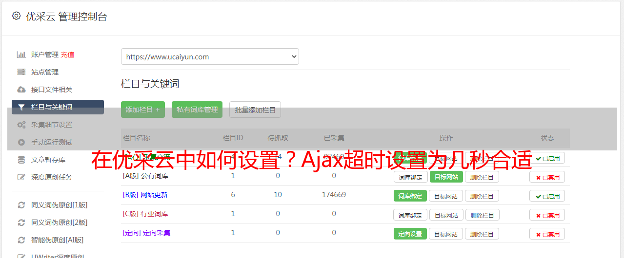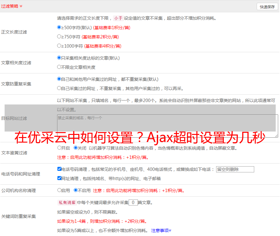 在优采云中如何设置?Ajax超时设置为几秒合适