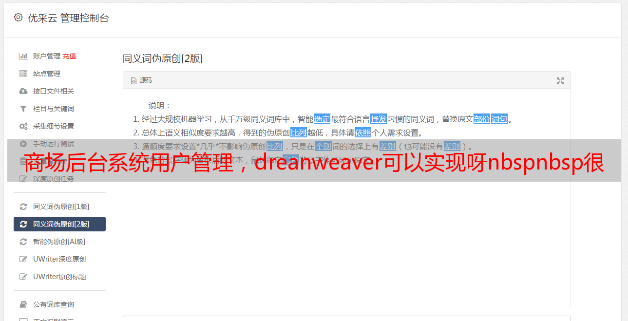 优采云 发布时间: 2021-08-20 00:18商场后台系统用户管理,dreanweaver可以实现呀nbspnbsp很简单