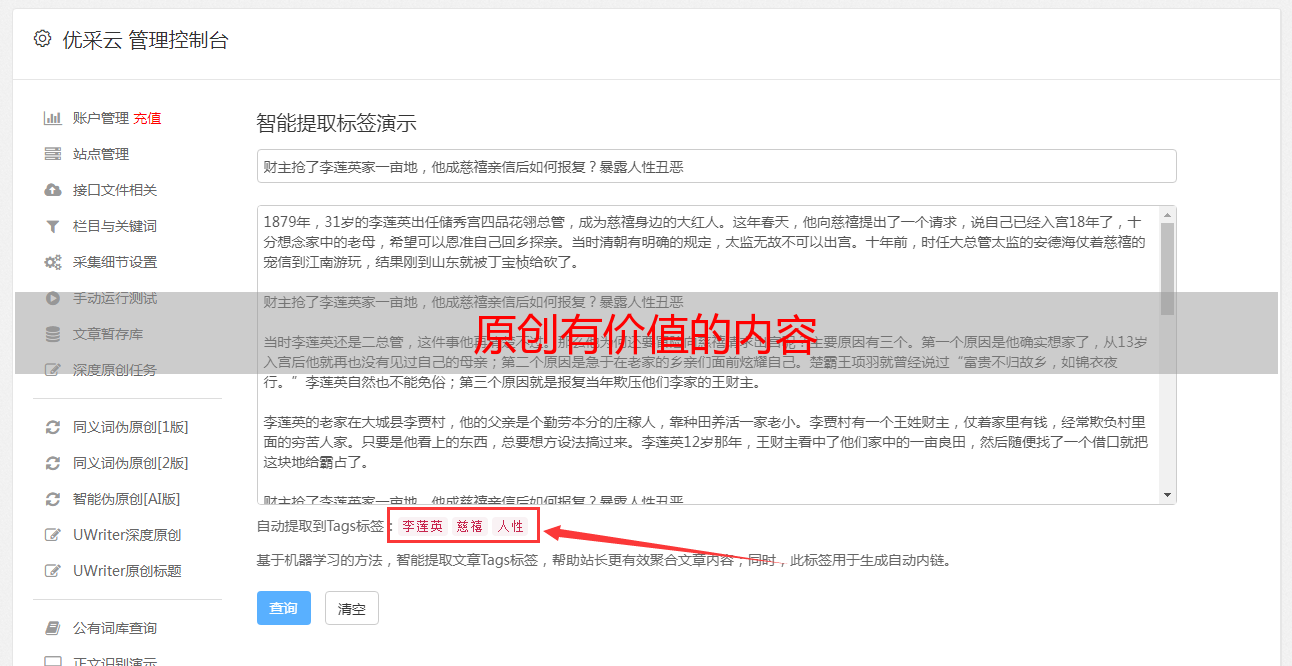 当然原创内容的收录和排行要优于其他两种,但是原创内容须要的时间更长,无法达到伪原创和转载的更新速率,这是大网站的要求,因为有充足的人力资源;伪原创是好多中小网站常采用的内容更新方法,能提升网站内容更新的速率,也在一定程度上保证网页的收录;转载内容或则剽窃内容,这些与搜索引擎已有内容高度重复的内容,被收录的可能性太低,除非网站有比较高的权重,才有可能被收录。通常收录也无法获得好的排行这是好多新站为了快速降低网站网页数目而进行的一种方式,例如常见的网站采集。