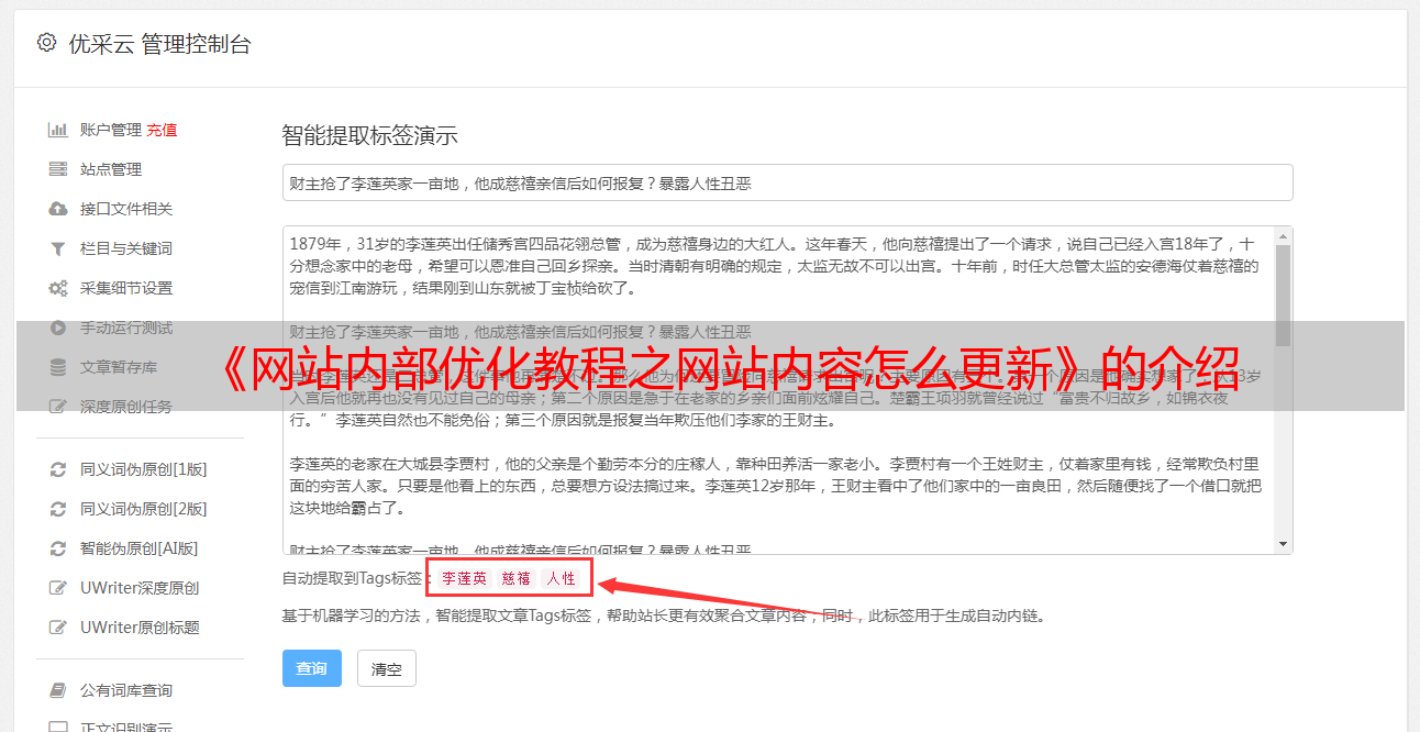 优采云 发布时间: 2021-08-22 00:05《网站内部优化教程之网站内容怎么更新》的介绍