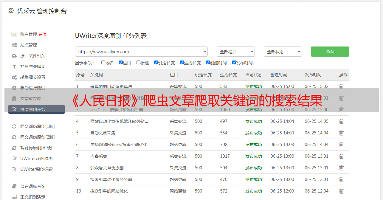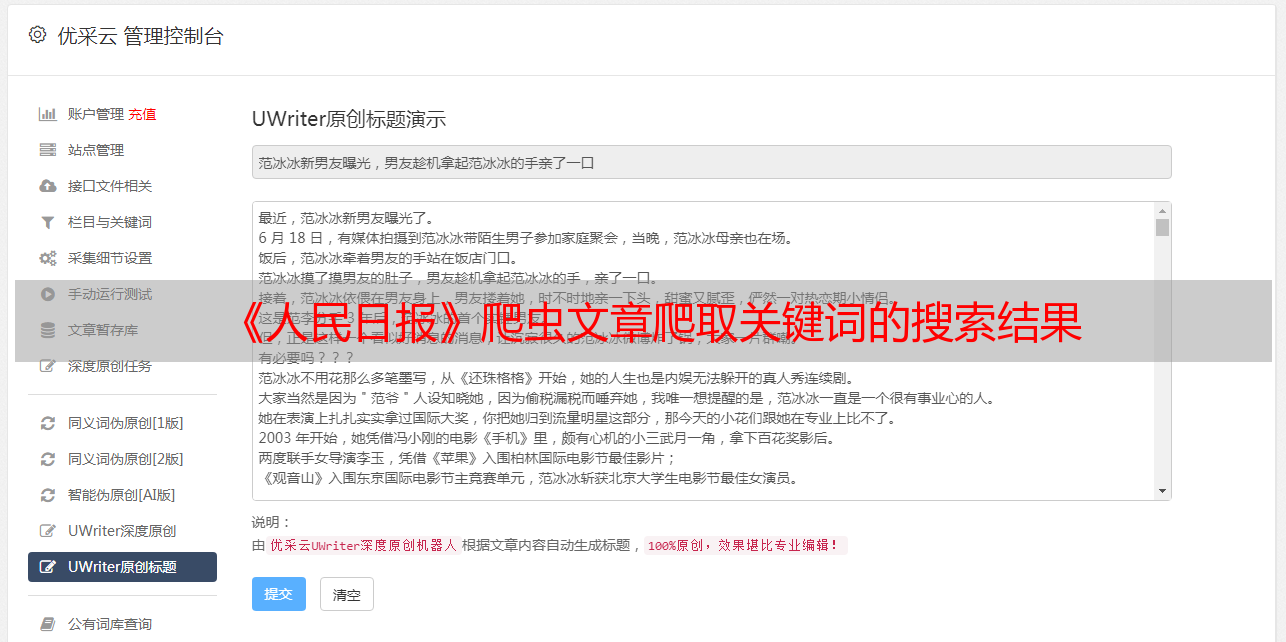 优采云 发布时间: 2021-08-22 05:50《人民日报》爬虫文章爬取关键词的搜索结果