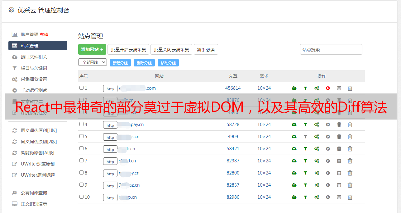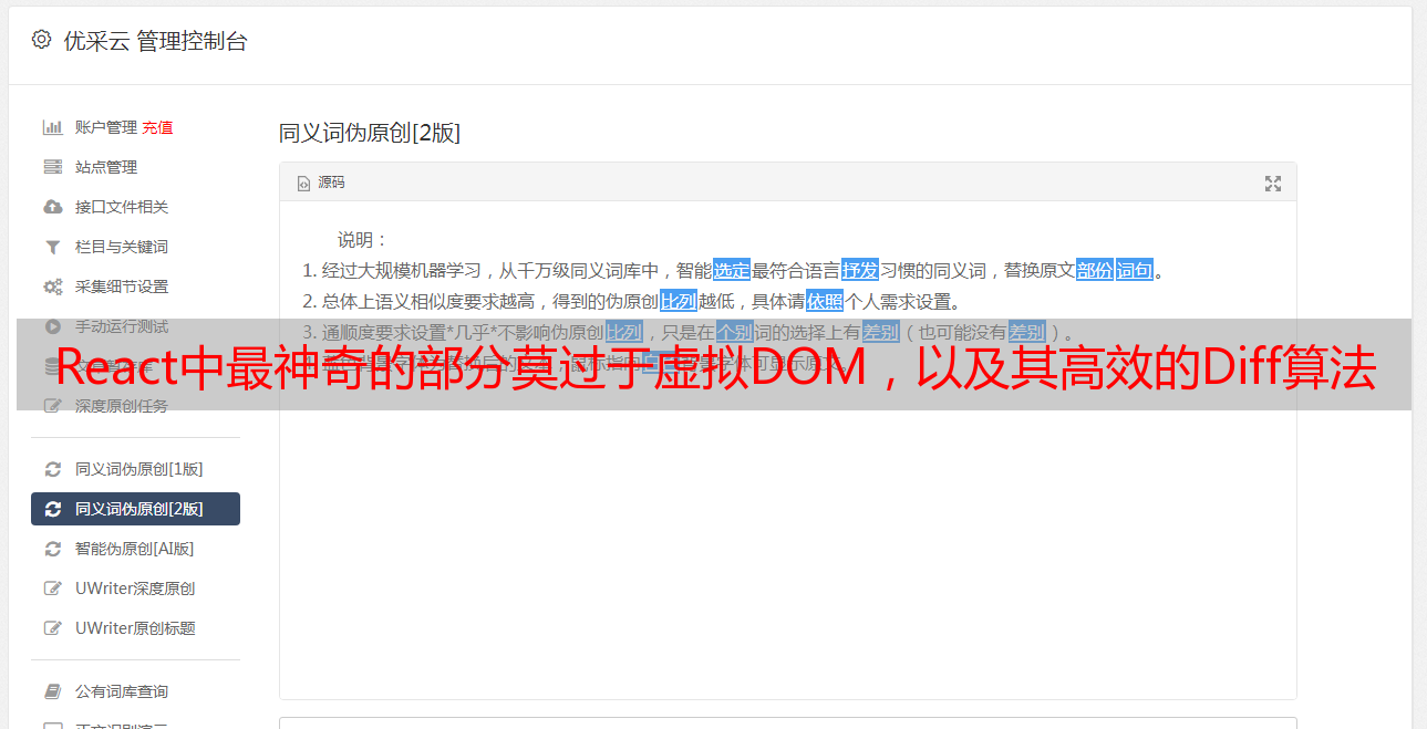优采云 发布时间: 2021-08-23 02:02React中最神奇的部分莫过于虚拟DOM,以及其高效的Diff算法