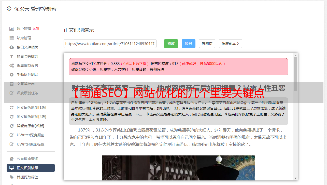 优采云 发布时间: 2020-08-13 18:15对于网站优化,优化的东西是全面,那就是说各个方面都很重要,那么都有哪几个方面比较重要呢,南通SEO公司小编帮大家整理了下边一些相关资料,就跟小编一起来瞧瞧吧。