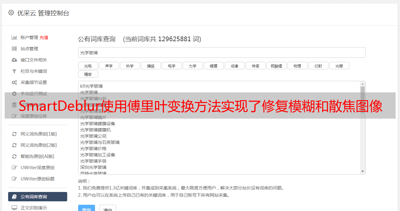 优采云 发布时间: 2021-08-24 03:25SmartDeblur使用傅里叶变换方法实现了修复模糊和散焦图像,重建失真图像