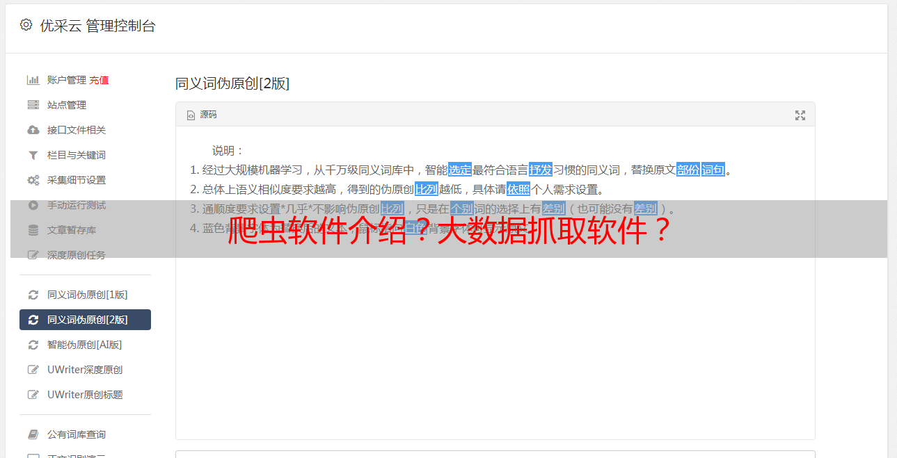 优采云 发布时间: 2020-08-13 19:06爬虫软件介绍?大数据抓取软件?什么是Python爬虫?Python爬虫又叫网络爬虫