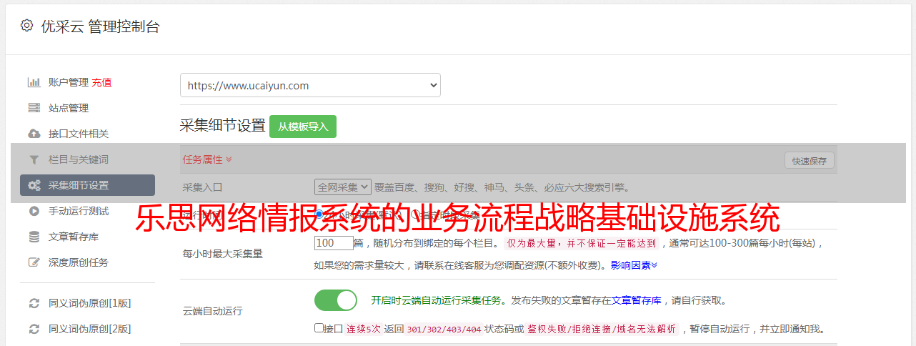 自动采集子系统可以对任何目标网站执行自动采集。