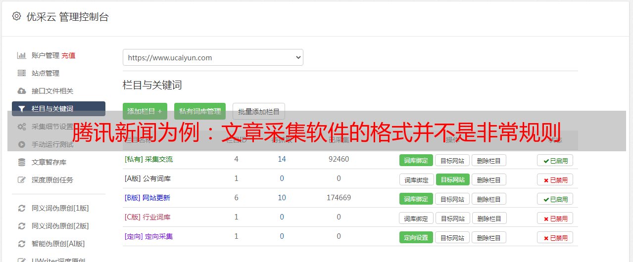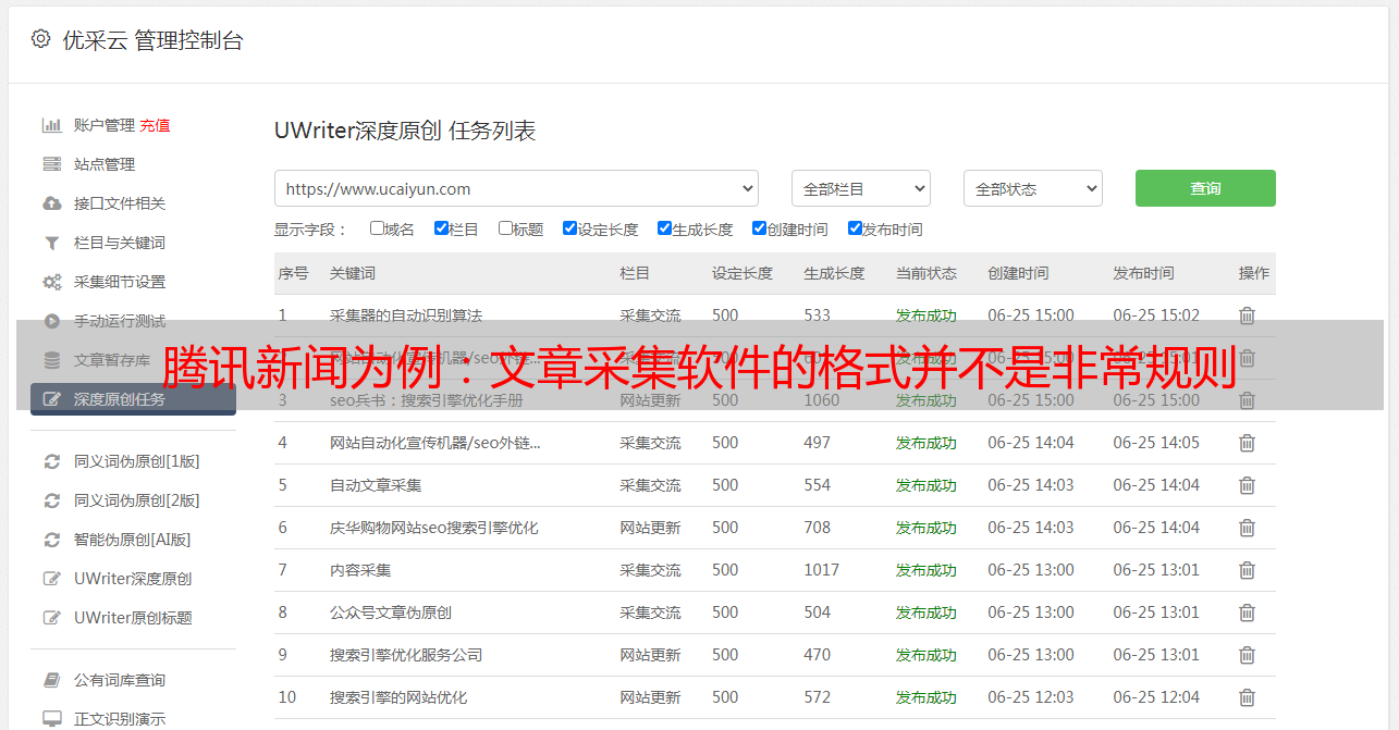 文章采集软件多采用源码分析截取文章的首尾字符来实现内容采集,优采云采集器在设置规则时就是基于这个原理,并且文本提取功能在优采云采集器配备了文本提取算法,可以自动识别文本。有了这个功能,操作起来更方便。如果文章的格式不是很规则,则采用前后截取的方法。