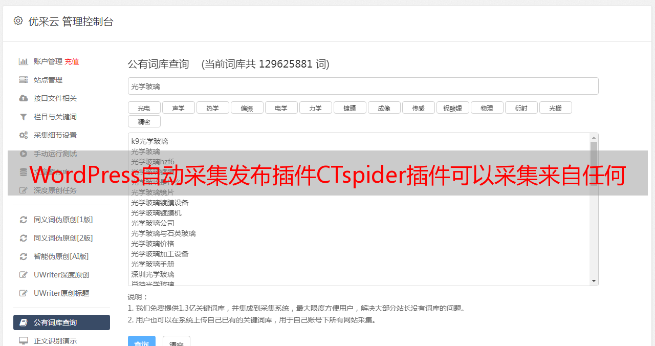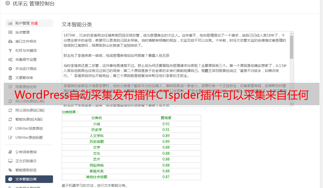 优采云 发布时间: 2021-08-25 21:02WordPress自动采集发布插件CTspider插件可以采集来自任何网站的内容