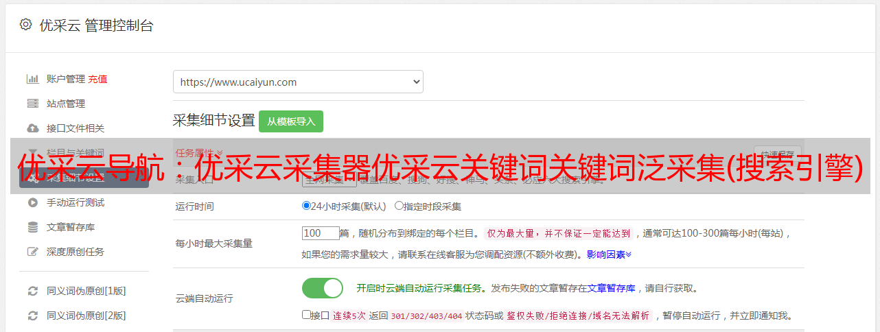 关键词泛采集的原图可能无法正常显示。如需保证图片显示或保存图片到服务器,请在“图片下载配置”中选择临时存储优采云或阿里云OSS或七牛存储;