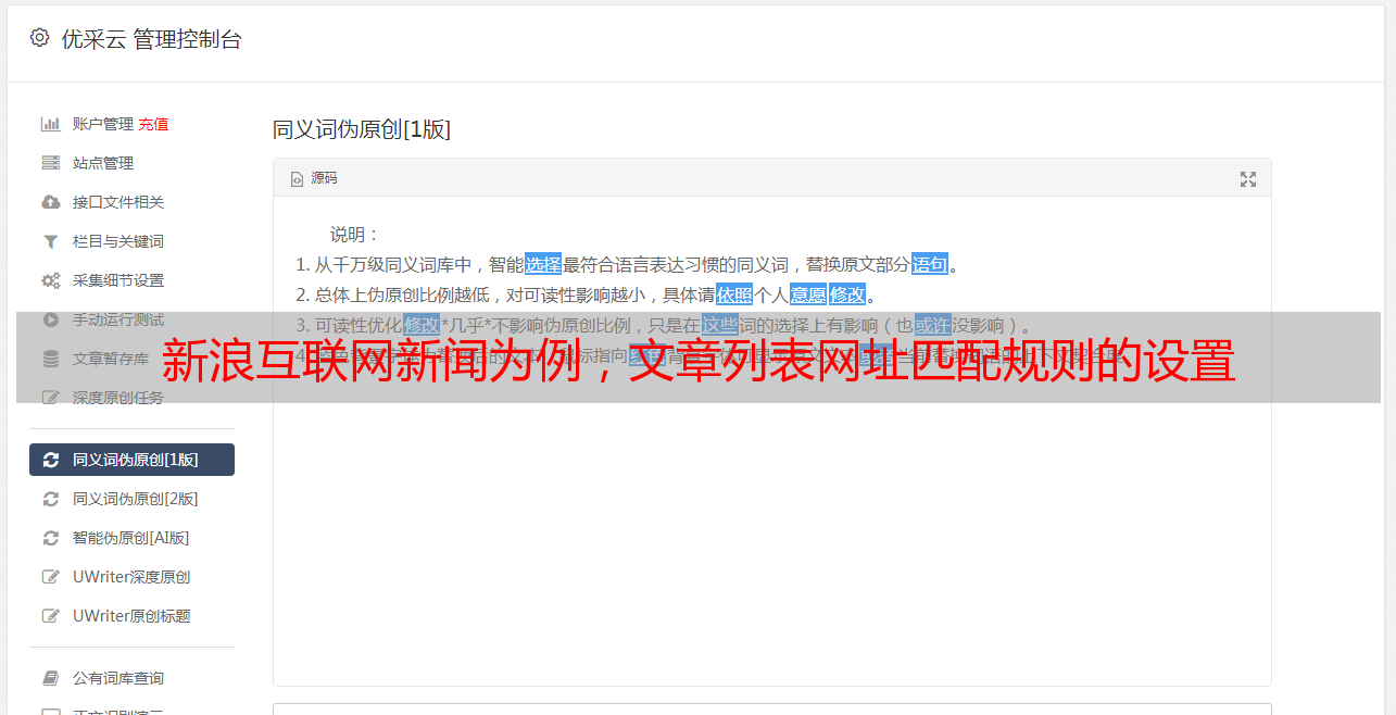 优采云 发布时间: 2021-08-26 18:05新浪互联网新闻为例,文章列表网址匹配规则的设置