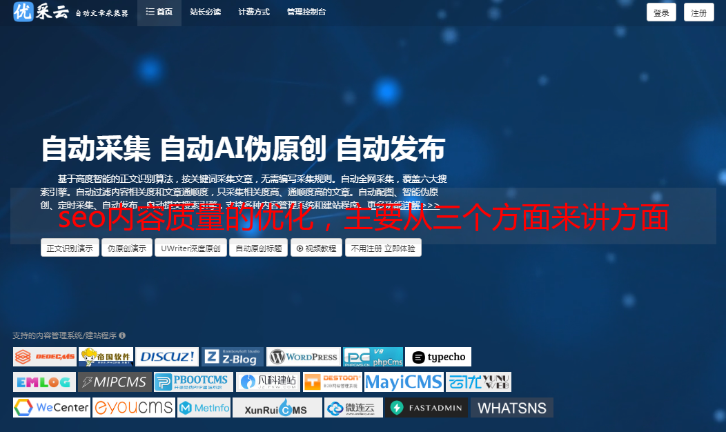 优采云 发布时间: 2021-08-26 18:10seo内容质量的优化,主要从三个方面来讲方面
