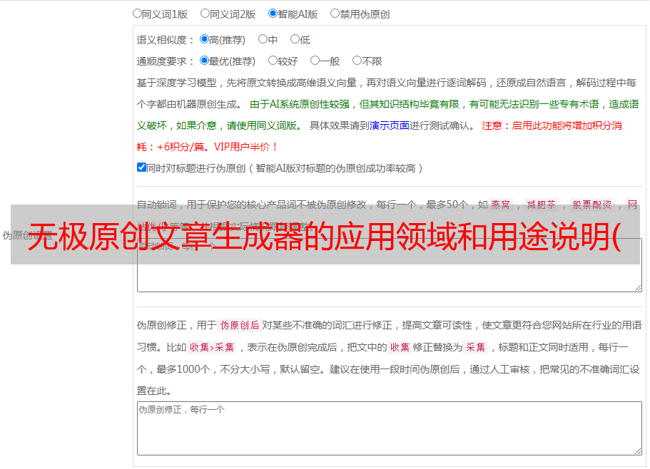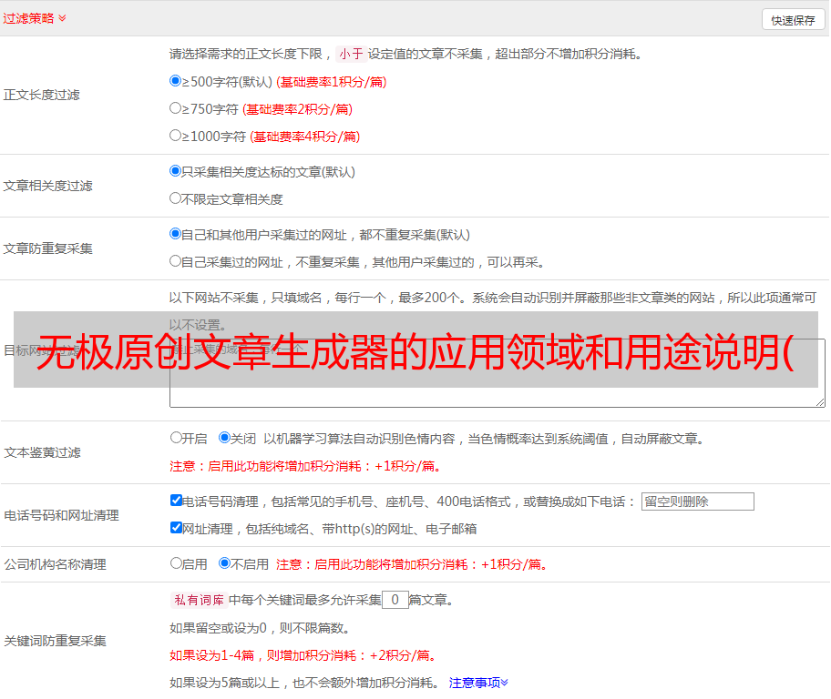 重要提示:文章是原创程度,流畅度,逻辑性,质量等等都取决于用户的设置。