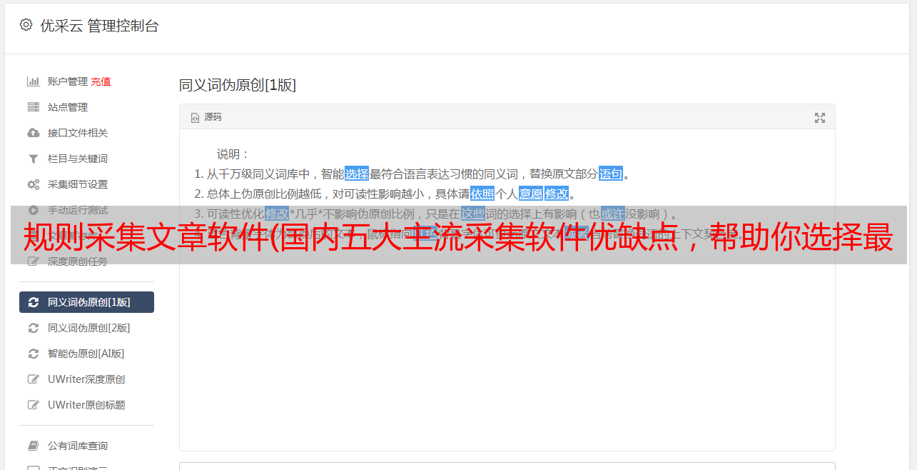 优采云 发布时间: 2021-08-27 20:22规则采集文章软件(国内五大主流采集软件优缺点,帮助你选择最适合的爬虫)