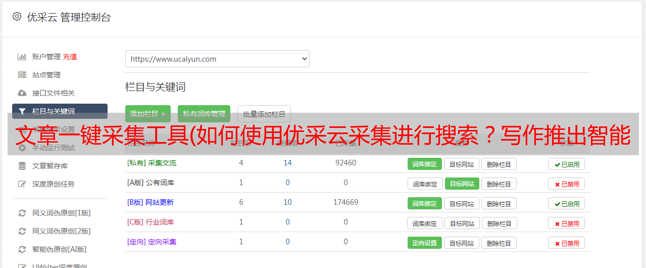 优采云采集是自媒体材料搜、文章原创的运营工具,一键发布,有效提高新媒体运营效率,降低企业成本。