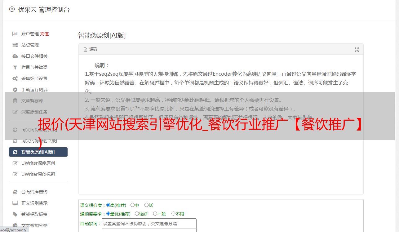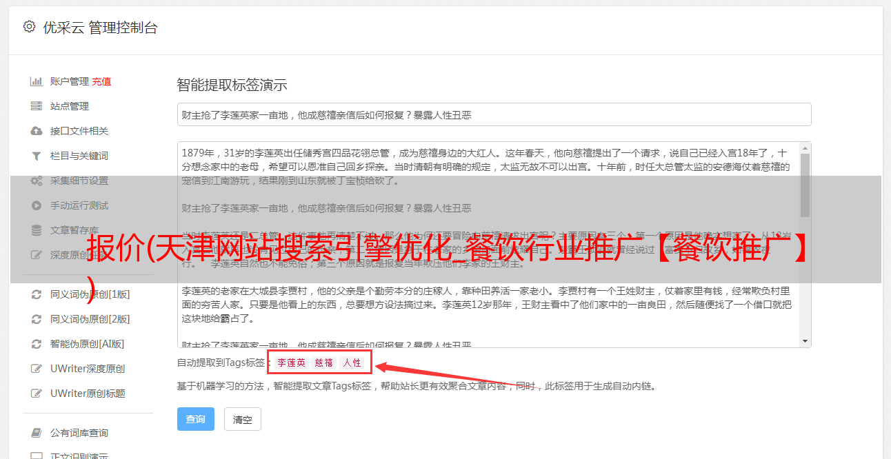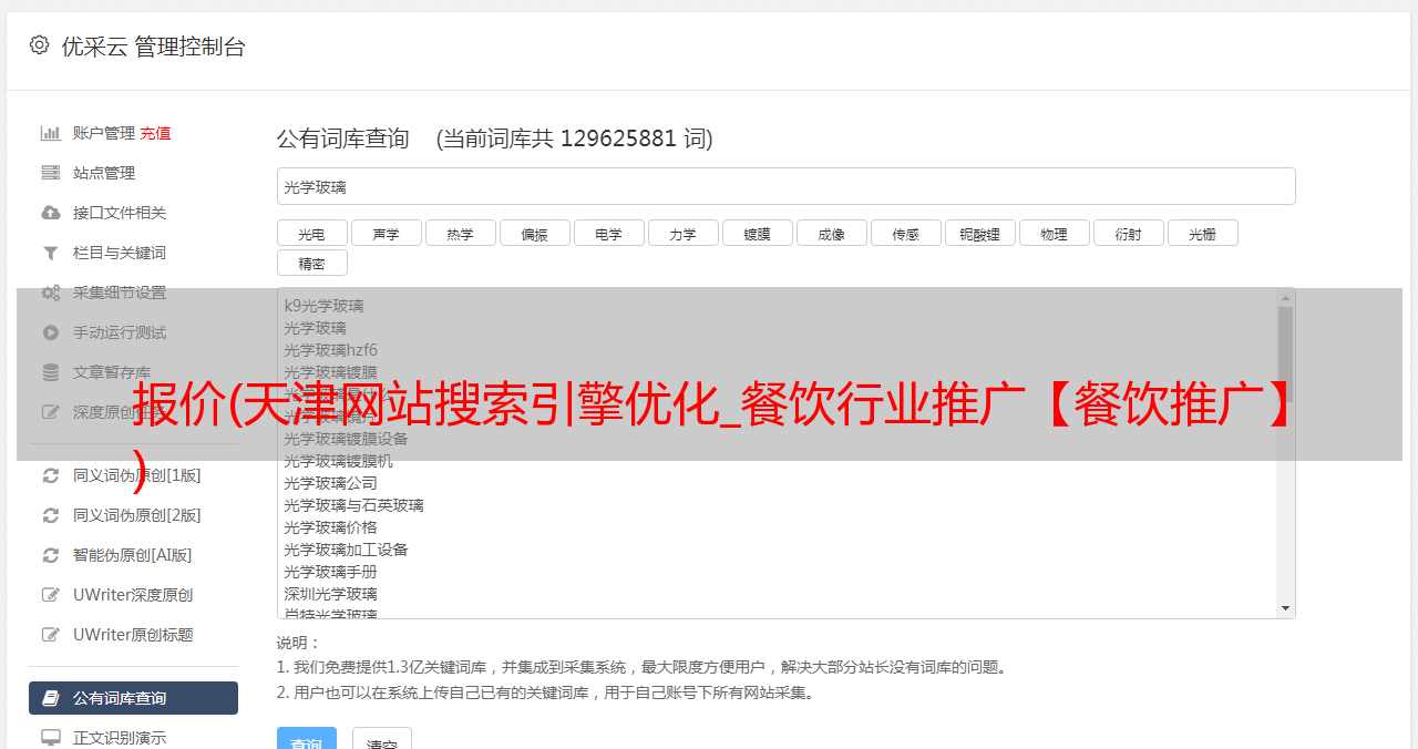 优采云 发布时间: 2021-08-28 15:16报价(天津网站搜索引擎优化_餐饮行业推广【餐饮推广】
