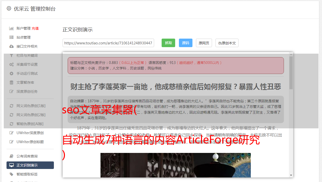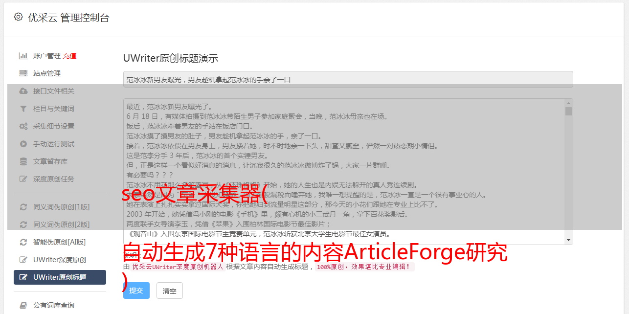 seo文章采集器( 自动生成7种语言的内容ArticleForge研究 )