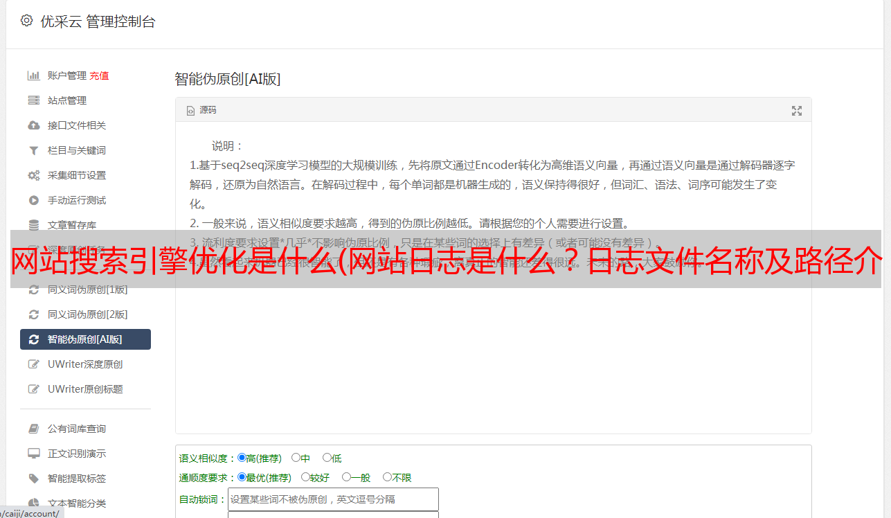 优采云 发布时间: 2021-08-29 03:11网站搜索引擎优化是什么(网站日志是什么?日志文件名称及路径介绍(一))